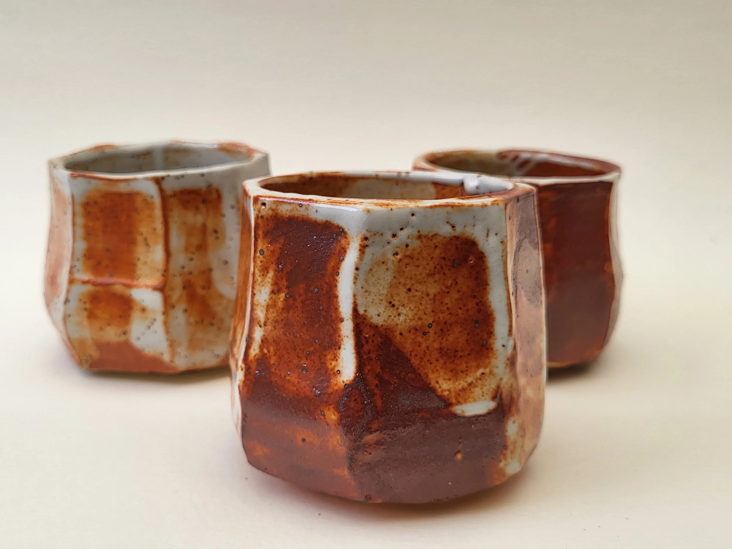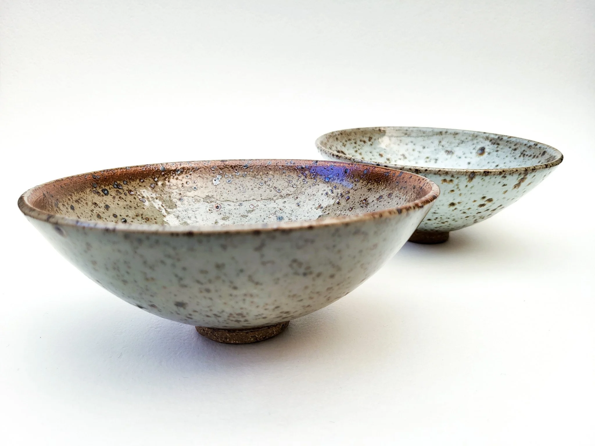 Ik werk met hoge temperatuurklei, rond 1250°C gebakken in de gasoven. Dat geeft stevigheid aan de stukken, maakt ze slijtvast en microgolf- en vaatwasserbestendig met subtiele kleurwendingen.
