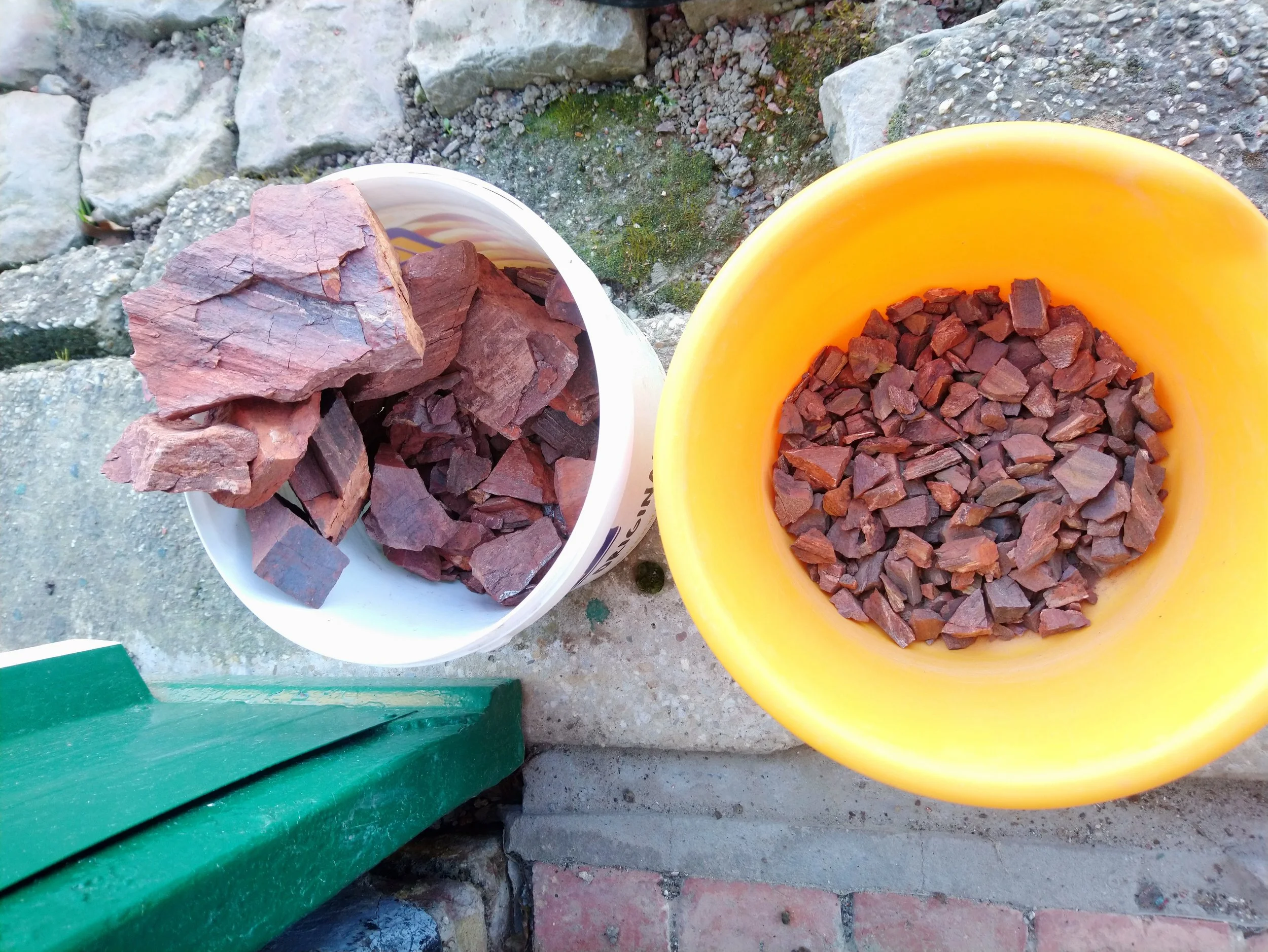 De gesteenten krijgen eerst de kans om te drogen. Dan worden de grootste stukken handmatig zoveel mogelijk verkleind waarna ze worden gecalcineerd op 1000°C. Door de thermische spanningen ontstaan er barsten die zich nog verder openen door de rotsen op ongeveer 200°C af te schrikken in koud water. Dan worden ze handmatig verder verkleind om uiteindelijk in de kogelmolen vermaald te worden tot een korrelgrootte van ongeveer 150 micron. Het gruis is nu klaar voor gebruik.