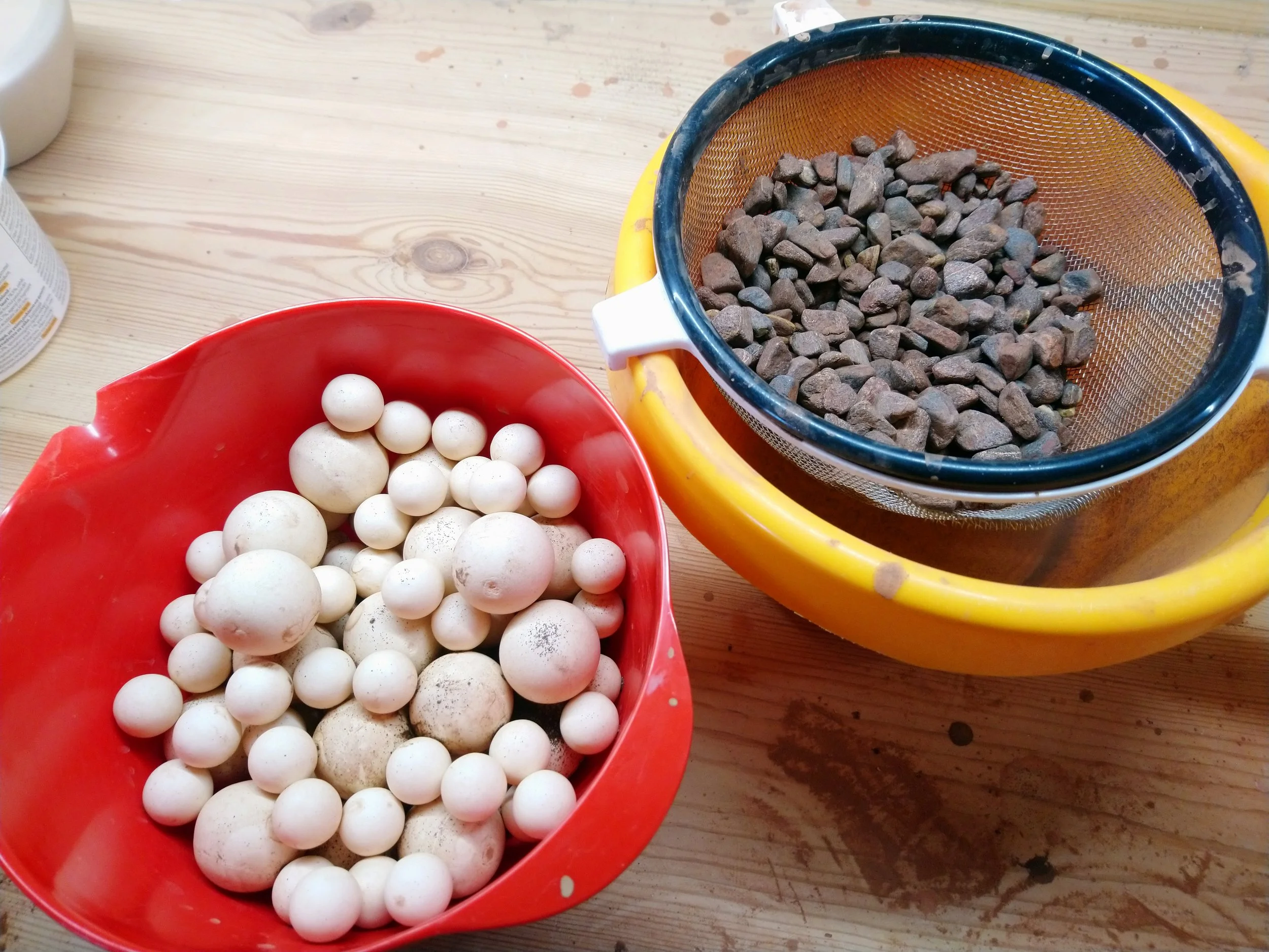 Sommige van de interessantste gesteenten zijn makkelijk te vinden, voor anderen is wat meer moeite nodig - sedimentaire gesteenten zoals zandsteen en klei, metamorfe gesteenten zoals schist en gneiss, stollingsgesteenten zoals basalt, graniet en gabbro’s en zelfs afval van tin- en kopermijnen - de gesteenten die we gebruiken komen allemaal uit Cornwall, Bretagne, de Ardèche of de Ardennen.